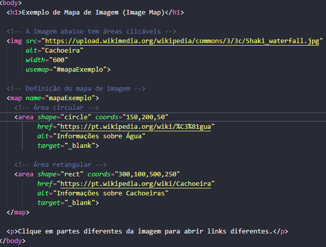 Image Map em HTML permite definir áreas clicáveis em uma imagem usando a tag <map> com <area>. Cada área pode levar a links diferentes.