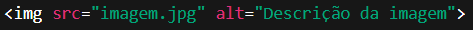 EXEMPLO: < img src="foto.jpg" alt="Descrição da imagem" >