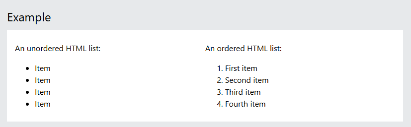Os itens da lista serão marcados com marcadores (pequenos círculos pretos) por padrão:
