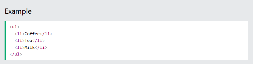 Uma lista não ordenada começa com a <ul>tag . Cada item da lista começa com a <li>tag .