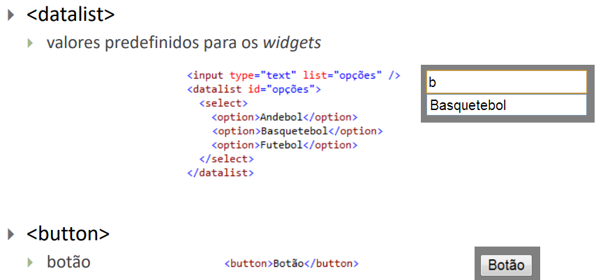 O elemento "Input" é campo de entrada que permite assumir diferentes tipos de widgets