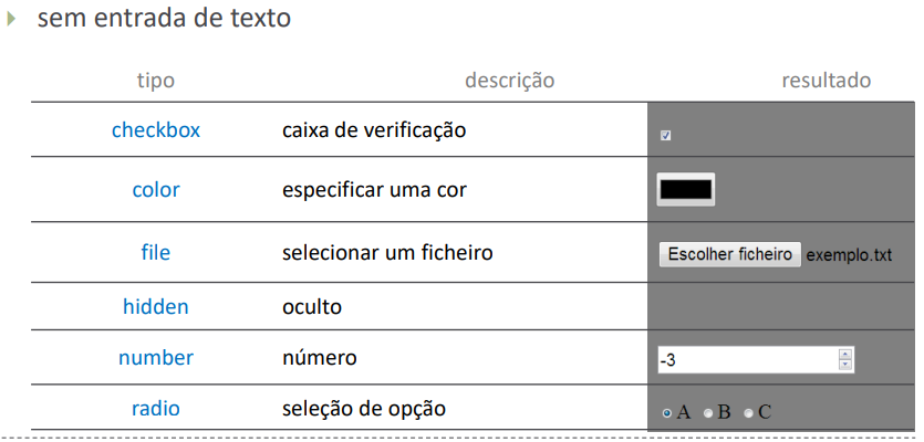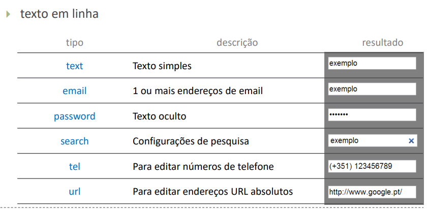 O elemento "Input" é campo de entrada que permite assumir diferentes tipos de widgets
