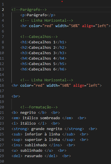 <sub>...</sub> — deixa o texto em subscrito (inferior à linha).
