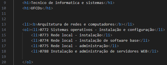 <ul>...</ul> → lista não ordenada (com bolinhas)
