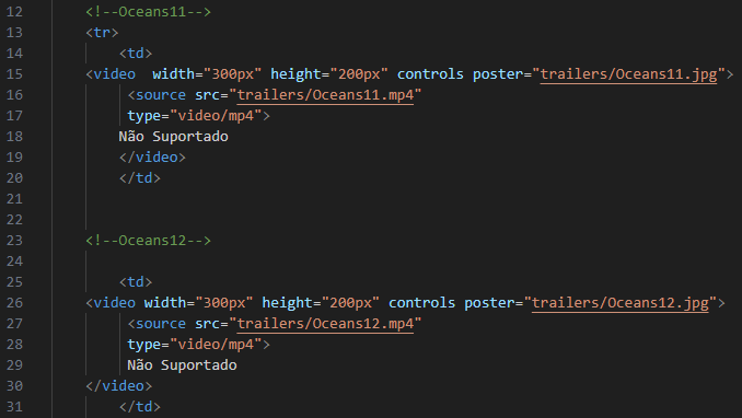 <td>...</td> — cria uma célula comum da tabela, usada aqui pra colocar os vídeos.