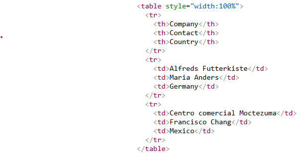Cada célula da tabela é definida por uma e uma tag. (td) e (/td)