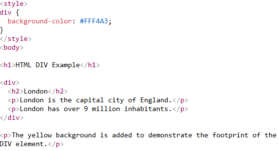 The yellow background is added to demonstrate the footprint of the DIV element.
