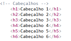 Eles são representados pelas tags (h1) até (h6), onde:
